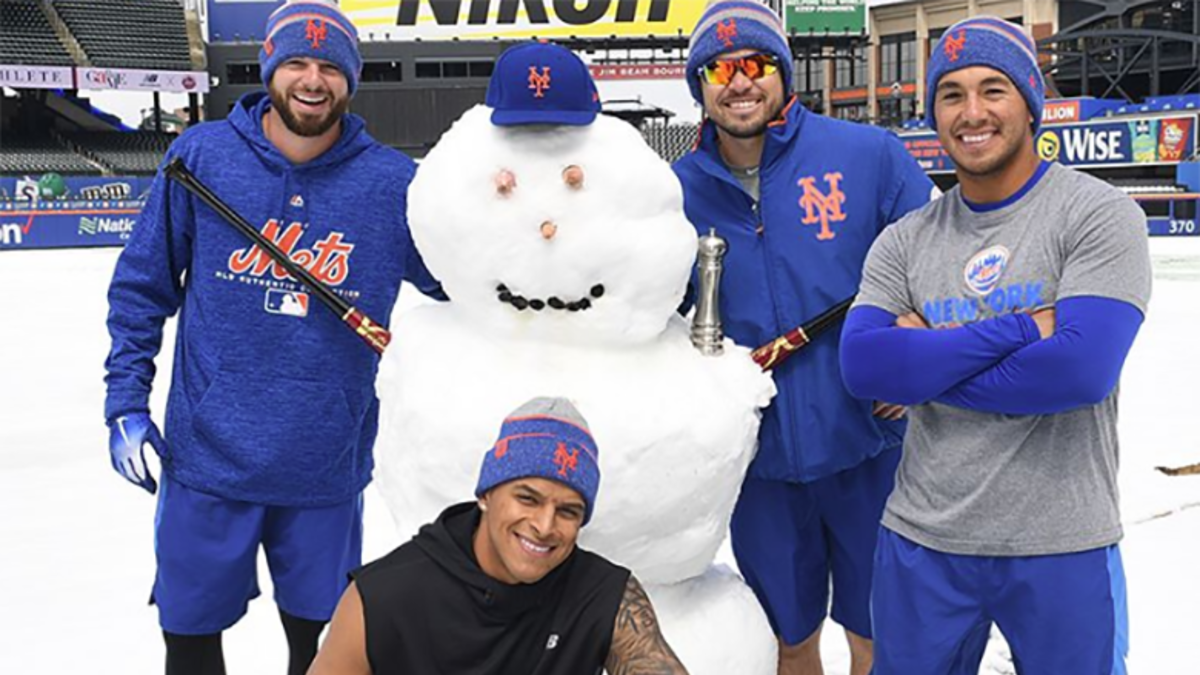 Mets Players Make the Most of Snow Day at Citi Field