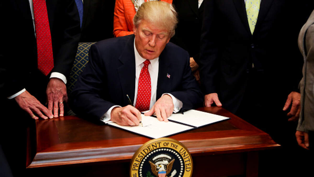 President Trump has signed an executive order that directs agencies to cut regulations possibly hindering economic growth. He made the official announcement at a White House cabinet meeting.