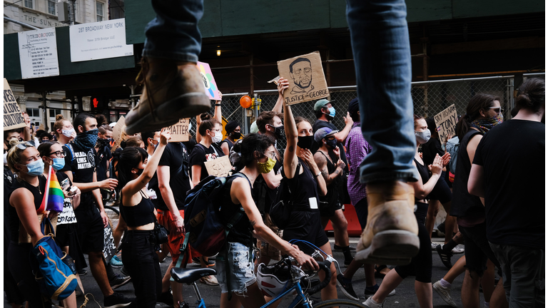 A man was arrested Tuesday evening in Manhattan after allegedly driving an SUV through a crowd of Black Lives Matter protesters and over a barrier of bicycles.