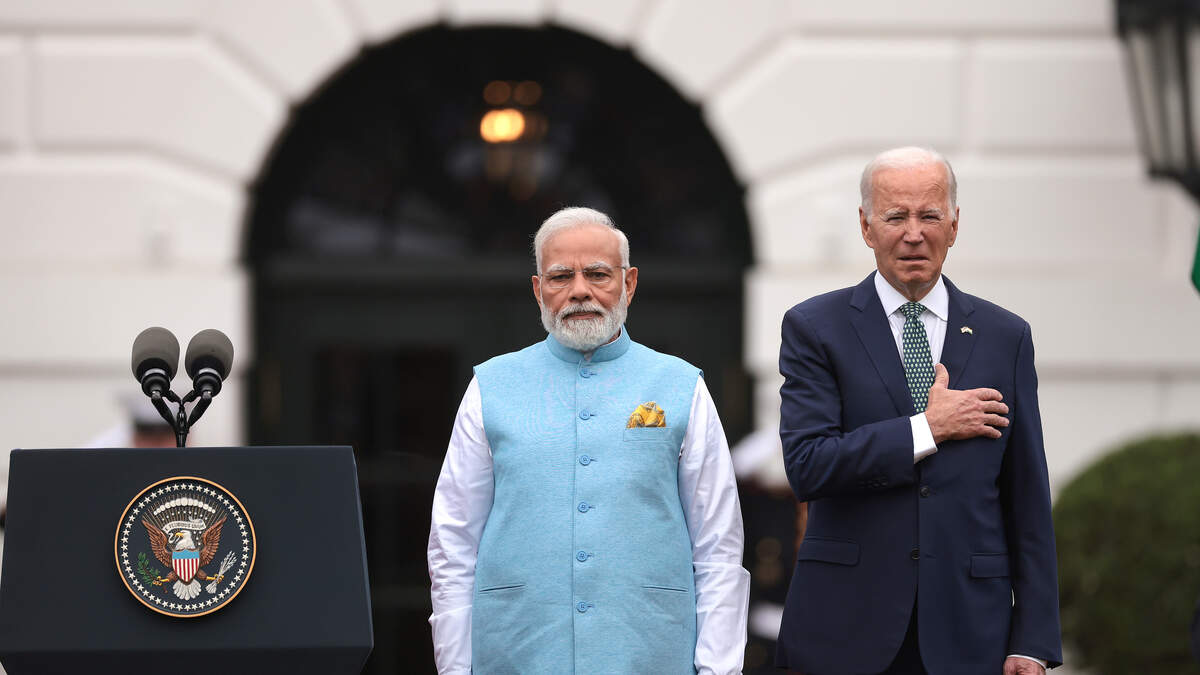 Confused Joe Biden caused an awkward spectacle Thursday morning, putting his hand on his heart for the Indian national anthem, then slowly lowering it when he realizes he's got the wrong national anthem: