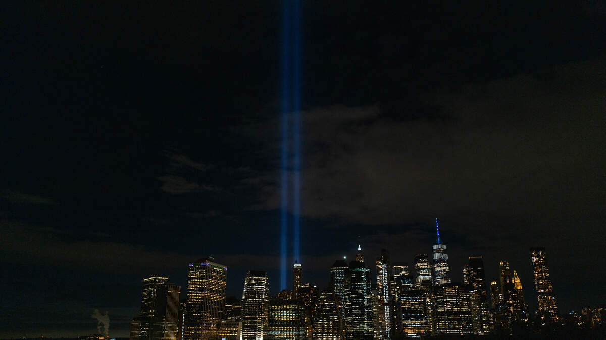 New Yorkers stopped in the streets and looked up from their phones to view a double rainbow over the city on the 22nd anniversary of 9/11. Photo Credit: Getty Images North America