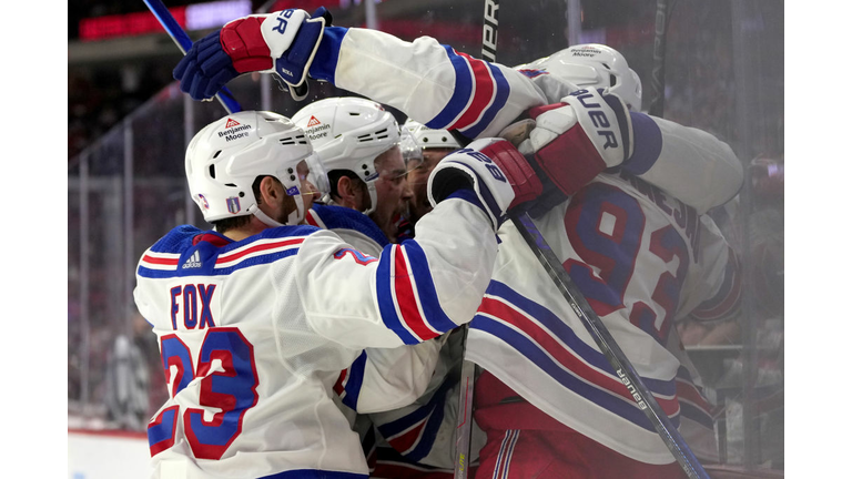 New York sports fans are having a dream weekend, especially if their favorite team calls Madison Square Garden its home. The Rangers came back from a two-goal deficit Thursday night to knock off the Carolina Hurricanes in six games and punch their ticket to the NHL’s Eastern Conference Finals. It’s the second time in three years the Broadway Blueshirts have been there, as they try to snap a thirty-year title drought; the last time the Rangers hoisted the Stanley Cup was in 1994. The Knicks, meanwhile, will play in Indiana Friday night with a three-games-to-two lead in their playoff series with the Pacers; a win tonight or on Sunday in Game Seven would send them to the NBA’s Eastern Conference Finals for the first time since 1999, as they bid for the team’s first title since 1973.