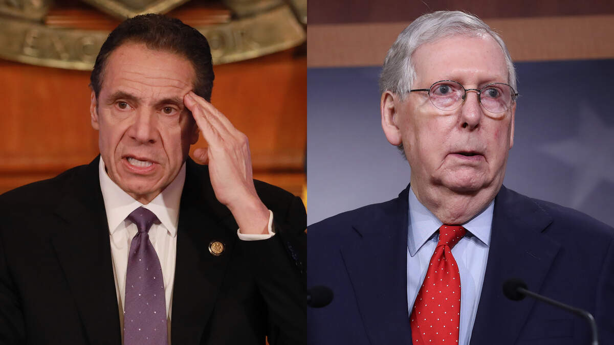 The governor accused McConnell of resorting to "vicious," "ugly" partisanship, specifically directed at states like New York, New Jersey, Michigan and California, during a global crisis. Cuomo noted that state budgets fund essential services like police departments, fire departments and schools.