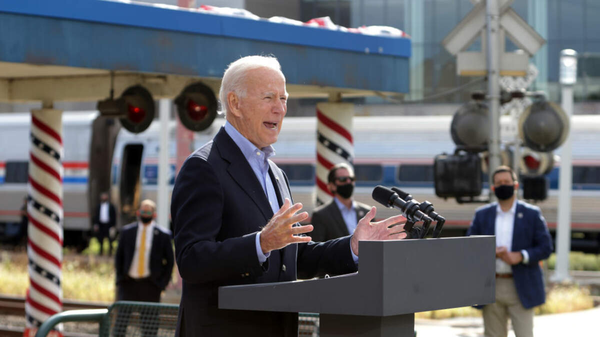 Watch a Train Totally Distract Joe Biden During His Speech