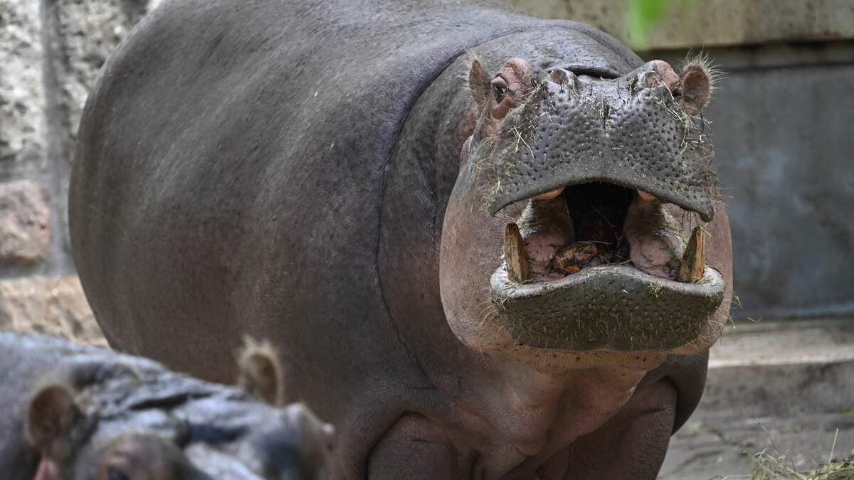 Horrifying moment as an enraged hippo attacks its zoo keeper after he tried to break up a fight between two territorial bulls in their enclosure in China